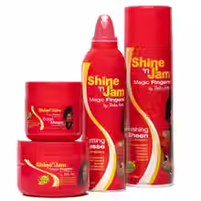 Created in collaboration with celebrity braider Stasha Harris, Shine N Jam Magic Fingers is a professional-grade styling gel designed to give braiders the perfect blend of hold, shine, and control. This non-flaking, alcohol-free formula is enhanced with silk protein and olive oil to nourish the hair and scalp while delivering long-lasting definition and sleekness. Ideal for cornrows, box braids, twists, and other intricate styles, it leaves no residue and keeps styles looking neat for longer.BenefitsSpecially formulated for braiding and protective stylesDelivers a firm hold with high shine and no flakingEnriched with silk protein and olive oil for moisture and strengthHelps tame flyaways and smooth edgesAlcohol-free and non-greasy for healthier stylingHow to UseApply a small amount to clean, dry hair before braiding or twisting. Smooth with fingertips or a comb for precision. It can also be used to lay edges or refresh styles as needed.